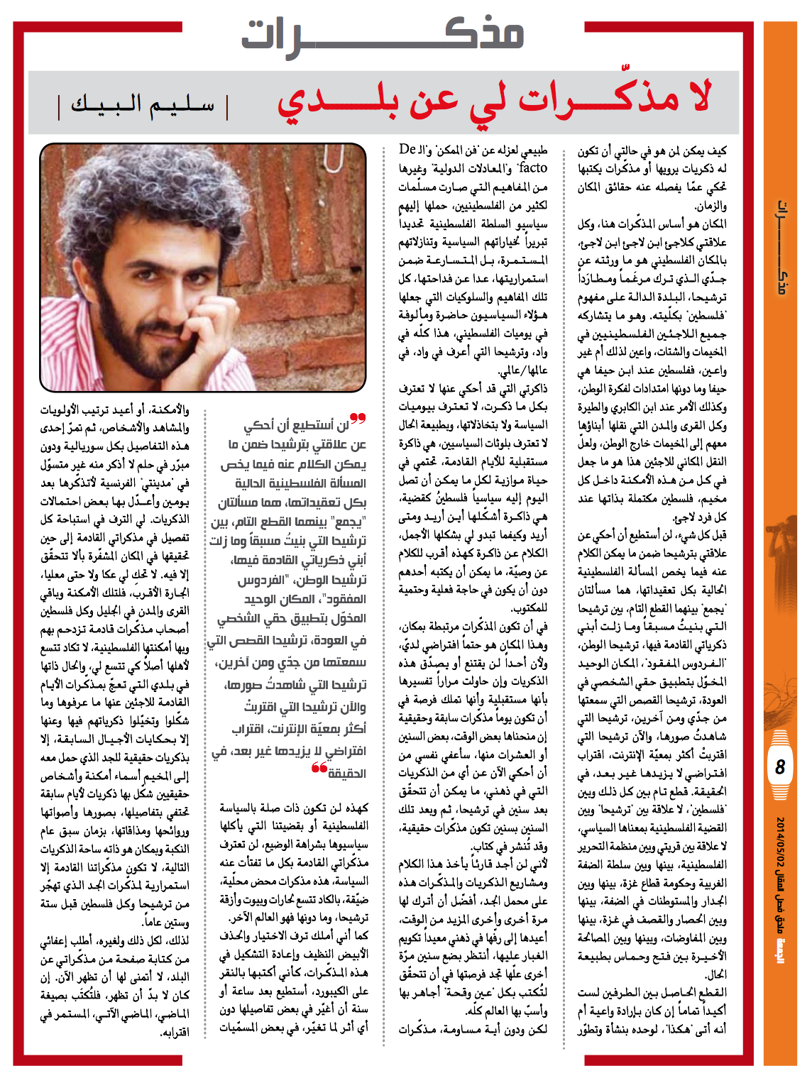 كيف يمكن لمن هو في حالتي أن تكون له ذكريات يرويها أو مذكّرات يكتبها تحكي عمّا يفصله عنه حقائق المكان والزمان.