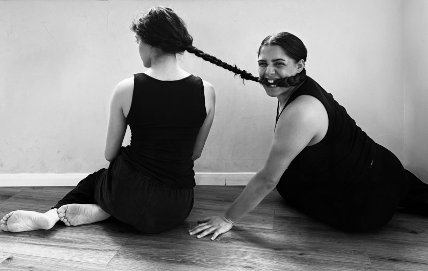 الرقص هنا هو تفكيك لما تعلّمتاه مرح ونور من رقص “يجنّد البطن”، هو لفظه عن جسديهما، هو استفراغ للاستعمار، إفراغ للبطن من تجنيده، في رقص معاصر ومغامر من دون موسيقى، أقرب إلى جلسات علاجية للجسد، لروح الجسد، أقرب إلى حالات معافاة، أقرب إلى تشكيلٍ من بعد التفكيك، لحركات خاصة، خالية من رواسب الرقص الاستعماري، الرقص العنيف، القاتل.