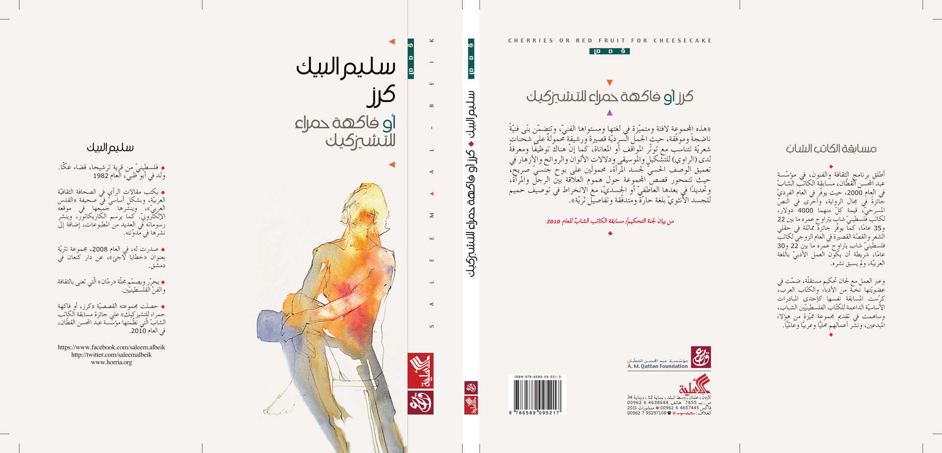 صدرت مؤخراً للكاتب سليم البيك المجموعة القصصية “كرز، أو فاكهة حمراء للتشيزكيك” ، وذلك عن دار الأهلية للنشر (عمّان) ومؤسسة عبد المحسن القطان (رام الله – لندن)، حيث حصلت المجموعة على جائزة مسابقة الكاتب الشاب التي نظّمتها المؤسسة في العام 2010.